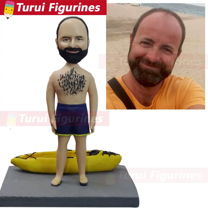 custom head statue dugout canoe canoeing man figurines bobblehead dolls sports figurines personaliz