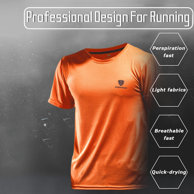 FANNAI Running Shirt Men Gym shirt Breathable Polyester Dry Fit Sport New Quick Dry Fitness Work out sports shirt