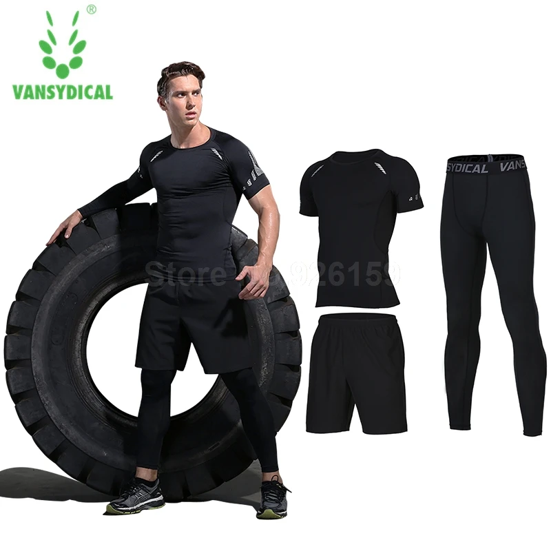 Vansydical 2019 Men Compression Suits Men Breathable Running Suits Mens Sports Shirt Compression Pants 3pcs Gym Workout Clothing