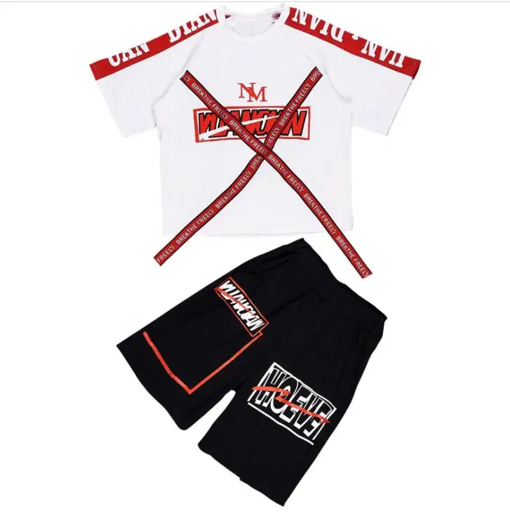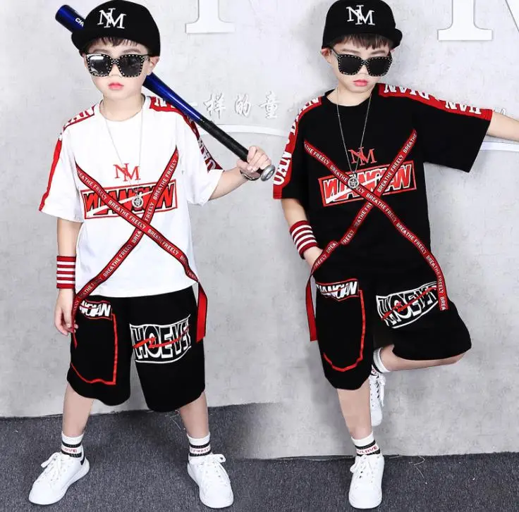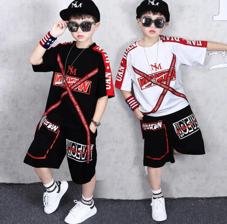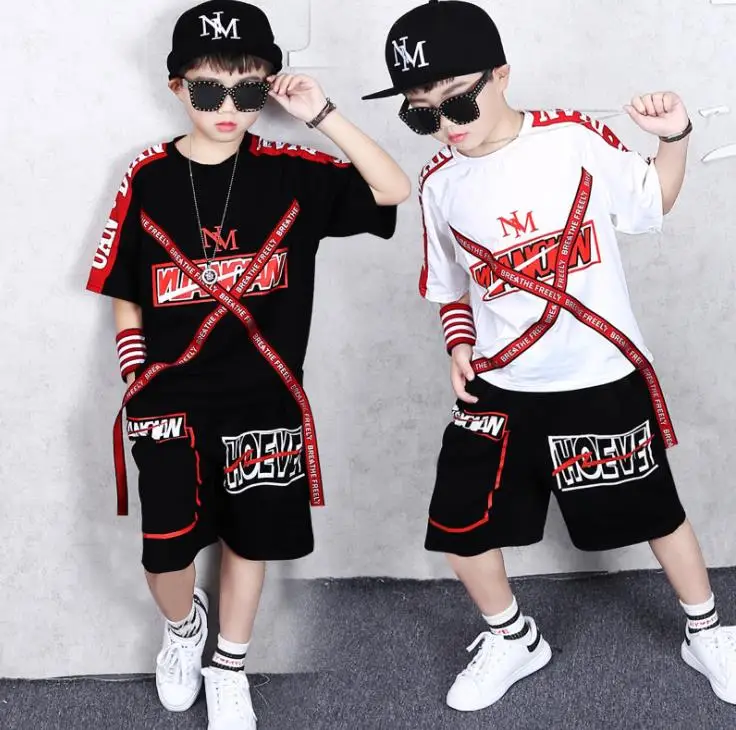 2 Pieces Suit Kids Teenage Boys Clothing Sets Hip-hop Dancing Sports Tracksuits Cotton T-shirt + Sh